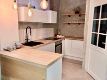 - Puutasot, Paljon työskentelytilaa, Astianpesukone, Induktioliesi, Liesituuletin, Jää-pakastinkaappi