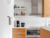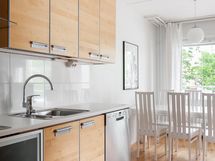 - Keittiön varusteet: Jääkaappipakastin, liesituuletin, uuni, astianpesukone ja liesi. Liesi: Induktioliesi.