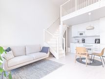 Tervetuloa tutustumaan tähän valoisaan ja tilavaan parvelliseen kotiin, joka sijaitsee rauhallisella Pakilan alueella Helsingissä. Asunto sijaitsee hissillisessä kolmikerroksisessa talossa. Asunto hurmaa valoisuudellaan ja avaruudellaan - suurista ikkunoista tulvii sisään luonnonvaloa ja todella korkeat huoneet luovat avaran tunnelman. Olohuoneen huonekorkeus on melkein 4,5 metriä. Parven huonekorkeus on 1,57 metriä. Alakerran koko on 36 neliötä ja parven koko on 20 neliötä. Asunnon viralliset neliöt ovat 36, joten parven 20:stä neliöstä ei tarvitse maksaa lainkaan vastikemaksuja.