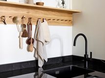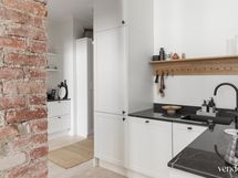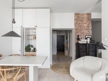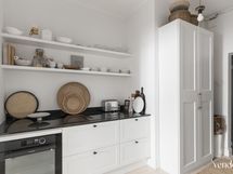 - Keittiön varusteet: Jääkaappipakastin (Liebherr, jääpalakoneella), uuni (De Dietrich), liesi (Witt, integroidulla liesituulettimella) ja astianpesukone (De Dietrich). Liesi: Induktioliesi. Työtason materiaali: Keraaminen, Florim. Suomalainen käsityönä mittatilaustyönä teetätetty erikoissyvä keittiö.