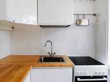Liesi: keraaminen. Työtasot: puu. Kylmäsäilytys: jääkaappi/pakastin.