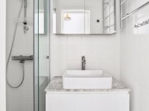 - Pesutilojen varusteet: WC-istuin, lattialämmitys, suihkuseinä, suihku, allaskaappi, pesuallas, peilikaappi ja rättipatteri. Erillisten WC:n lukumäärä: 1. Erillisen WC:n varusteet: Pesukoneliitäntä, wc-istuin, allaskaappi, pesuallas, peili ja bidee-suihku.