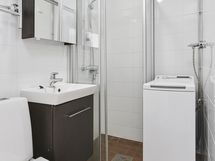 - Suihku, Pesukone, Peilikaappi, Allaskaappi, Rättipatteri, Laattalattia, Laattaseinä, Avattava ikkuna, Lattialämmitys, Suihkukaappi, Pesukonevalmius