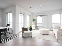 Tässä kohteessa on perusasiat kohdallaan; asunto, sijainti ja taloyhtiö. Kyseinen kulmahuoneisto saa luonnonvaloa kymmenestä ikkunasta, ja makuuhuoneita on eri puolelle asuntoa. Tilava avokeittiön ja olohuoneen yhdistelmä lasitetulla parvekkeella tarjoaa miellyttävän tilan yhteiseen ajanviettoon. Asunnossa on upeat maisemat josta voi ihailla auringonnousuja/-laskuja Helsingin keskustan suuntaan. Kaksi pienempää makuuhuonetta ovat riittävän tilavia parivuoteille.