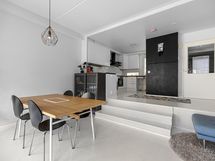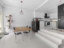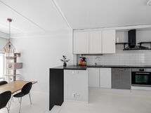 - Vaaleat kaapistot, välitila laatoitettu. Jääkaappi, pakastin, astianpesukone, induktioliesi, erillisuuni, liesituuletin. Seinät maalattu, lattia maalattu parketti