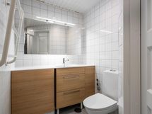 Makuuhuone on rauhallinen ja tilava, kaappitilaa löytyy runsaasti. Olohuoneen yhteydessä sijaitsee erillinen vaatehuone, joka toimii mainiosti myös työtilana. Sievä, vaaleasävyinen kylpyhuone on huolella remontoitu ja tarjoaa arjen mukavuutta tyylillä.