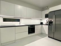 - Laminaattitasot, Boschin kodinkoneet: Integroitu astianpesukone, Induktioliesi, uuni, Side-by-side jää/pakastinkaappi jääpalakoneella.