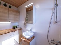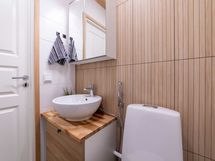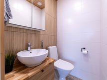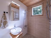 - Suihku, Pesukonevalmius, Peilikaappi, Allaskaappi, Rättipatteri, Laattalattia, Laattaseinä, Avattava ikkuna, Erillinen WC