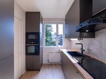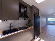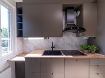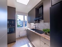 - Paljon kaappitilaa, Puutasot, Integroidut koneet, Induktioliesi, Liesi tai uuni erikseen, Liesituuletin, Astianpesukone, Jää-pakastinkaappi