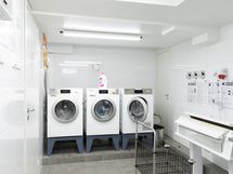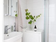 - Pesutilojen varusteet: WC-istuin, suihku, suihkuseinä, lattialämmitys, pesukoneliitäntä, peilikaappi ja pesuallas.