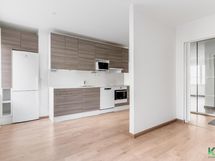 - Erillisuuni- ja taso, liesituuletin, astianpesukoneliitäntä, astianpesukone, mikro, jääkaappi/pakastin, keittiön kaapistot.