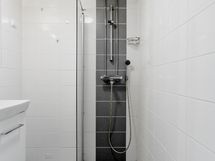 - Suihku/suihkuseinä ( kääntyvä), pesukoneliitäntä, allaskaappi, käsienpesuallas, peilikaappi, pyyhekuivain, lattialämmitys, käsisuihku, kiinteät valaisimet.