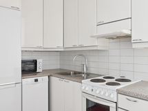 - Jääkaappi/pakastin, sähköliesi, liesituuletin filtterillä, astianpesukone