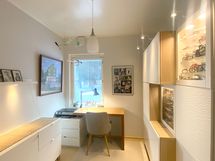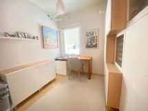 Nykyaikainen asuntomme on rakennettu vuonna 2012. Se on pohjaratkaisultaan avara ja nykyaikainen. Avokeittiö, ruokailutila, olohuone ja eteinen ovat yhtenäistä tilaa. Makuu-/työhuoneita on kolme, joten omaa tilaa löytyy jokaiselle. Isoin makuuhuone on suljettavissa liukuovella. Meillä on kaksi wc:tä: pienempään on sijoitettu pesukone ja kuivausrumpu, isommassa on lisäksi suihku ja sauna. Remontteihin ei ole tarvetta, kaikki pinnat ovat hyvässä kunnossa.