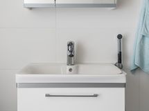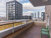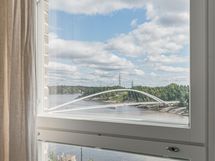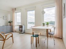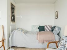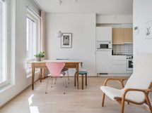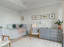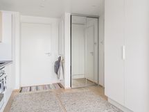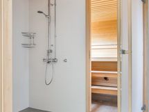 - Kylpyhuone, suihku, suihkuseinä, peilikaappi, allaskaappi, pesukoneliitäntä, lattialämmitys, kiinteät valaisimet.