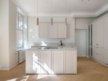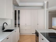 - Arkken keittiö Siemensin kalusteintegroiduin kodinkonein: induktioliesi liesituulettimella, erillisuuni, täyskorkea jääkaappi ja palastekaappi, astianpesukone, mikroaaltouuni, viinikaappi (Witt), Nerostein kvartsikomposiittityötasot, alta huullettu komposiittiallas, aamiaiskaappi