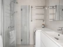 - Pesutilojen kuvaus: Varustus: Suihku, Suihkuseinä, Wc istuin, Pesukoneliitäntä, Hana, Allas, Peilikaappi, Allaskaapisto, Lattialämmitys
