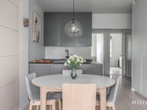 - Varustus: Induktioliesi, Liesituuletin, Uuni, Hana, Kaapisto, Allas, Astianpesukone, Jääkaappi, Pakastin