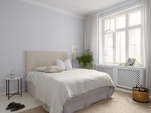 Päämakuuhuone on tilava ja rauhallinen, ja sen suurista, sisäpihalle päin olevista ikkunoista virtaa pehmeää luonnonvaloa sisään. Täältä löydät myös reilusti säilytystilaa. Pienempi makuuhuone sopii erinomaisesti esimerkiksi lastenhuoneeksi, tai työhuoneeksi. Alkovi tarjoaa monipuolista lisätilaa, joka muuntuu helposti vaikkapa lukunurkkaukseksi, vierashuoneeksi tai harrastetilaksi tarpeen mukaan. Erilinen wc ja kylpyhuone lisäävät arjen toimivuutta, ja ovat remontoitu tyylillä.