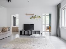 - Varusteet: Lattialämmitys, Suihku, Pesukoneliitäntä, Allaskaappi, Peilikaappi, Suihkuseinä, WC