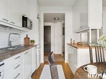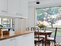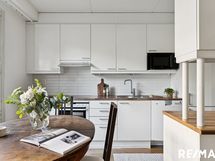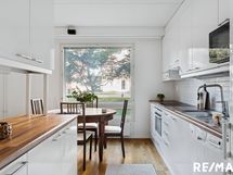 - Keittiön varusteet: Jääkaappipakastin, erillisuuni, liesi, liesituuletin, astianpesukone ja keittiösaareke. Liesi: Keraaminen liesi. Työtason materiaali: Laminaatti.