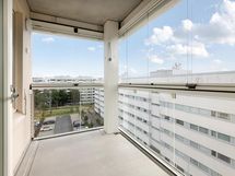 Asunnossa on lasitettu parveke. Lattiamateriaalina on laminaatti, märkätiloissa keraaminen laatoitus.