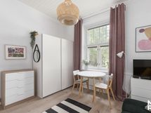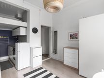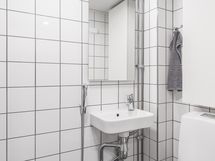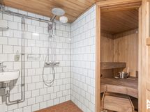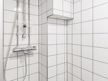 - Varustus: suihkuseinä, lattialämmitys, wc-istuin, suihku, peili, kylpyhuonekaapisto.