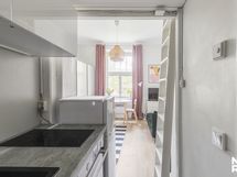 - Liesi: sähköliesi, induktio, erillisuuni. Työtasot: laminaatti. Kylmäsäilytys: jääkaappi/pakastin. Varustus: astianpesukone.