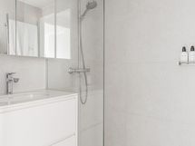 - Varustus: suihkuseinä, lattialämmitys, suihku, kiinteät valaisimet, asennettuja erikoisvarusteita. Erillisen WC:n kuvaus: Upea mittatilaustoteutus, joka täydentää yhteynäisyyden asunnon muiden tilojen kanssa. Varustus: lattialämmitys, bidee-suihku.