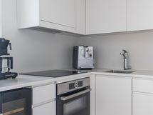 - Liesi: integroitu, induktio, erillisuuni. Työtasot: muu. Kylmäsäilytys: jääkaappi/pakastin, viinikaappi. Varustus: mikroaaltouuni, astianpesukone, kiinteät valaisimet, liesituuletin / hormi. Upea lähes uudenveroinen puusepän taidonnäyte. Corian taso, intergroidut kodinkoneet ja pieteetillä tehty toteutus.