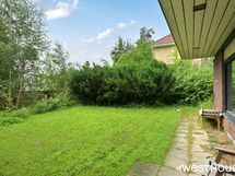 Piha-alue on nurmikkoa ja istutuksia, kulkuväylät asfaltoitu.