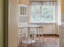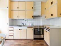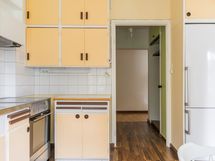 - Jääkaappipakastin, lattialiesi Keraaminen, liesituuletin, kaapistot, kiinteät valaisimet.