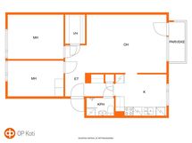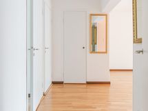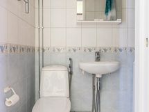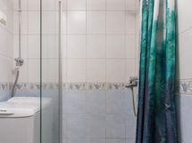 - Kylpyhuone, suihku, peilikaappi, pesukoneliitäntä, lattialämmitys, kiinteät valaisimet. Pyyhepatteri