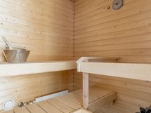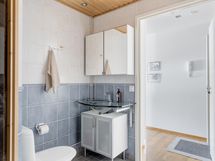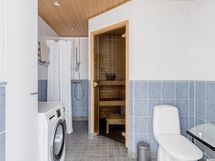 - Saunassa on sähkökiuas. Kylpyhuoneessa on suihku, peilikaappi, allaskaappi, pyykkikaappi, pesukoneliitäntä, sähkötoiminen lattialämmitys, vesikiertoinen pyyhekuivain.