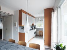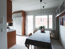 - Paljon kaappitilaa, Suuri tiskipöytä, Terästasot, Astianpesukone, Keraaminen liesi, Jääkaappi, Pakastin, Kivitasot