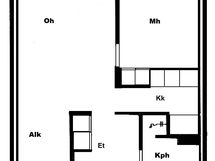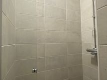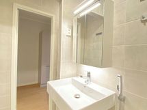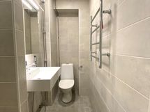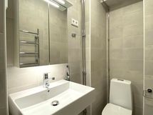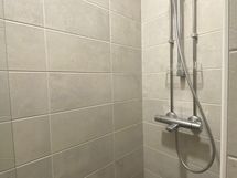- Suihku ja suihkuovi, pesukonevalmius, peilikaappi, rättipatteri, lattialämmitys laattaseinä ja lattia, wc ja pidé-suihku
