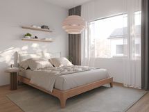 The ground floor features an entrance area, open-plan kitchen and living room, bathroom, and sauna. The ceiling height in the living areas is a generous 2.8 meters. An additional room can be added to the living room as an optional extra—or implemented later. Under the stairs, there's a practical storage space. Upstairs, you'll find four bedrooms and a combined utility and bathroom with toilet and shower.
