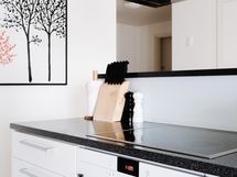 - Jääkaappi/pakastin, astianpesukone, keraaminen liesi, erillisuuni- ja taso, kaapistot, irralliset saarekkeet, liesituuletin filtterillä.