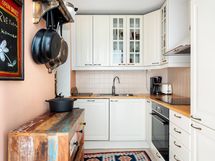 - Vaaleat kaapistot, massiivipuutasot, jääkaappi/pakastin 2023, astianpesukone 2023, induktioliesitaso 2021, uuni 2021, liesituuletin suodattimella 2022.