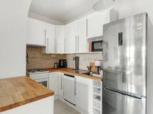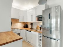 - Kaapistot, jääkaappi/pakastin, kaasuliesi, astianpesukone, kiinteät valaisimet.