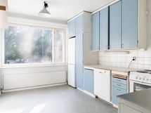 Huoneistossa on alkuperäinen keittiö ja päivitystä kaipaavat pinnat. Kylpyhuone ja erillinen WC on uusittu kesällä 2025, samalla uusittiin keittiön ja yhden makuuhuoneen linoleumlattia.
