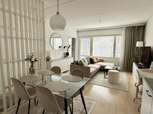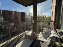 Huoneistossa on siistit vaaleat pintamateriaalit, avoin pohjaratkaisu, tilava kylpyhuone saunalla sekä kookas makuuhuone johon mahtuu hyvin etätyöpiste. Lasitettu parveke tarjoaa lisätilaa oleskeluun.