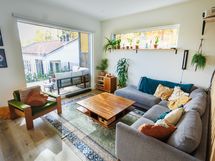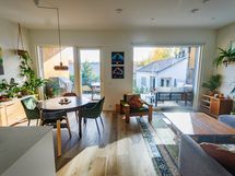 - Suuret ikkunat olohuoneessa etelään päin. Ikkunoita myös länteen ja pohjoiseen.