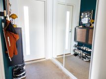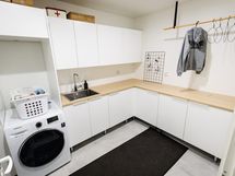 - Paljon säilytystilaa; eteisen peilikaapisto, yläkerran makuuhuoneessa 5 korkeaa kaappia, alakerrassa 4. Kodinhoitohuoneessa runsaasti säilytystilaa. Alakerran terassilta käynti lämmitettyyn varastoon. Myös teknisessä tilassa tilaa säilyttää esim. polkupyöriä.