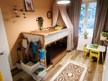 - Hyvin valoisa yläkerta. Yläkerran huonekorkeus n. 270cm.