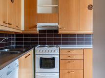 - Jääkaappipakastin, sähköliesi, liesikupu, kaapistot, kiinteät valaisimet.