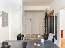 - Liesi: sähköliesi, erillisuuni. Työtasot: laminaatti. Kylmäsäilytys: jääkaappi/pakastin. Varustus: astianpesukone, liesituuletin / hormi.