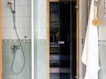 - Pesutilojen kuvaus: Alakerran kph saunan yhteydessä, jossa suihku ja suihkuseinä.