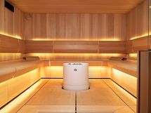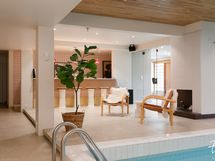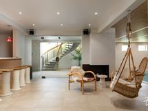 Alakerrasta löytyy mm. kuntosali, sauna-, uima-allas- ja takkatila sekä varmasti yksi Helsingin kauneimmista baareista. Täydelliset puitteet niin rentoutumiseen kuin isommankin seurueen illanviettoon.