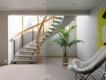 Messinkikaiteiset kierreportaat, suuria ikkunoita ja Muranon kattovalaisimia - talon alkuperäisiä yksityiskohtia, jotka sykähdyttävät edelleen.